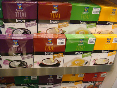 還有西米露的真空包,煮熱水加牛奶就可以沖出一碗好吃道地的西米露,不過本人是尚未開煮啦!另外還買了有泰國米+紅咖哩雞的料理包,用微波爐就能處理,問題是我沒有微波爐,所以也還是放著。同一間店裡的小姐一聽到我用中文自言自語,馬上帶我去看包裝上寫著大大的燕窩兩字中文,嘴裡熱切說著「燕窩很好」之類的中文,一包8000泰銖,沒打錯,就是八千。因為中國臉還是營養不良菜色臉,讓她覺得我迫切需要這種昂貴的補品。