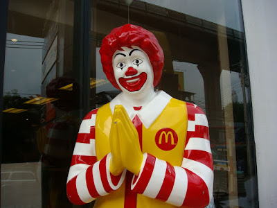 這是曼谷街頭在普通不過的景色,不管是本土品牌還是外來品牌,店員有禮的接待一開始就是這樣的招牌動作,雕像也會是這樣雙手合十地站在門口,不管是麥當勞還是玩具反斗城,不過我很好奇的是,麥叔叔雙手合十眼睛也要睜得那麼大嗎?我看了有點怕ㄟ。