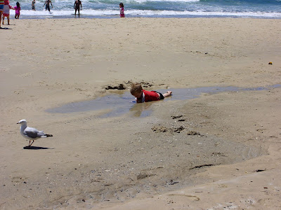 我更喜歡的是這裡的沙灘,不見主沙灘的擁擠人潮,長長的白沙灘上,有人釣魚有人溜狗有人散步,就算風一吹細沙刮花了太陽眼鏡,我依舊很愛。真是到哪裡都是個孤僻的傢伙。